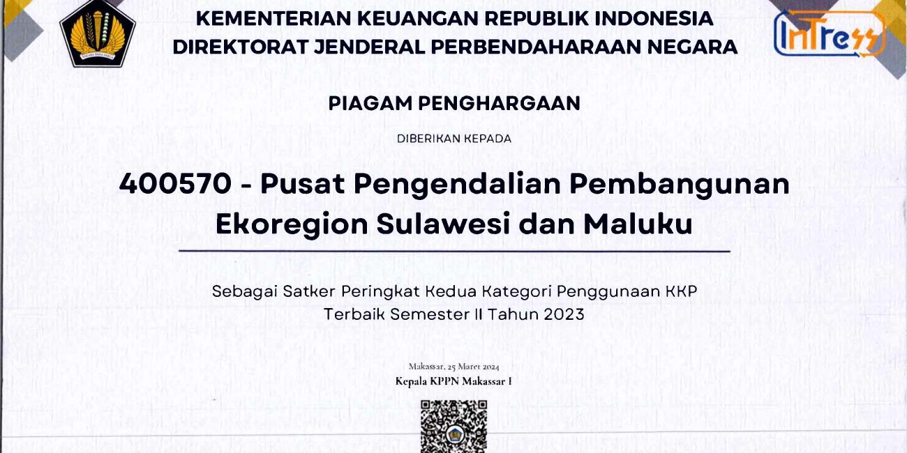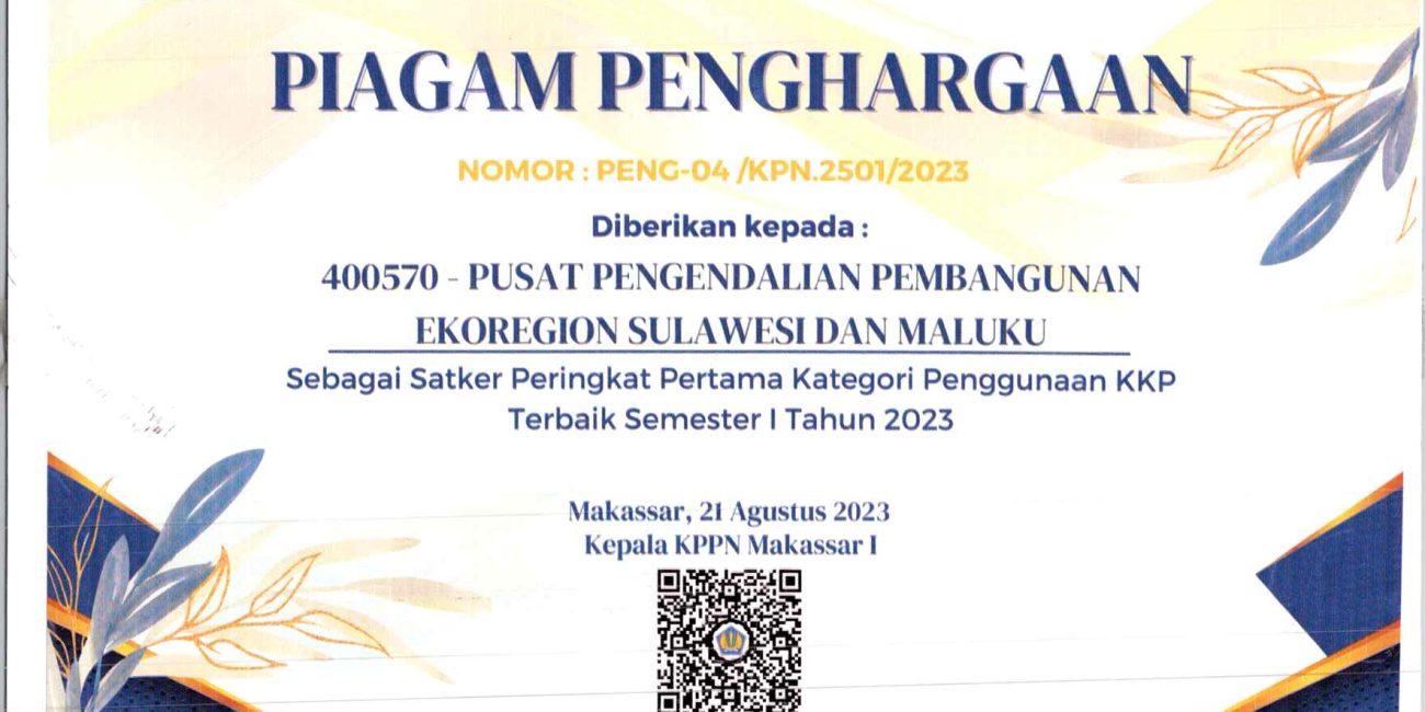 Piagam Penghargaan Satker Peringkat Pertama Kategori Penggunaan KKP Terbaik Semester I Tahun 2024