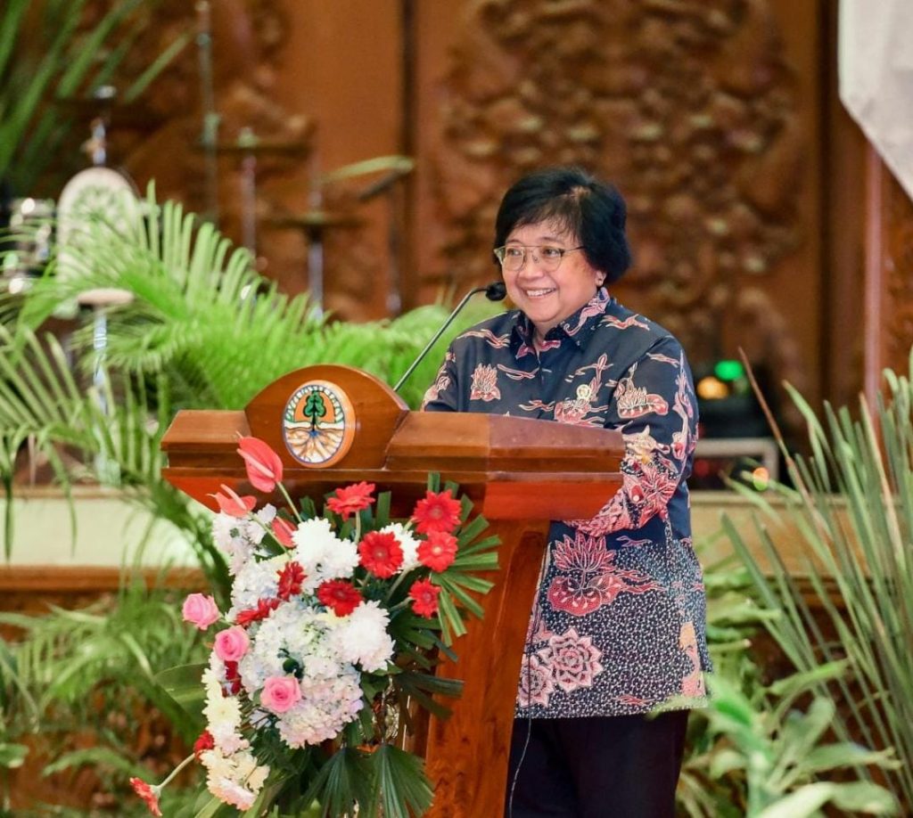 Menteri Lingkungan Hidup dan Kehutanan, Siti Nurbaya saat memberikan arahan pada momen ‘Resepsi Peringatan Hari Bhakti Rimbawan’ di Gedung Manggala Wana Bhakti.