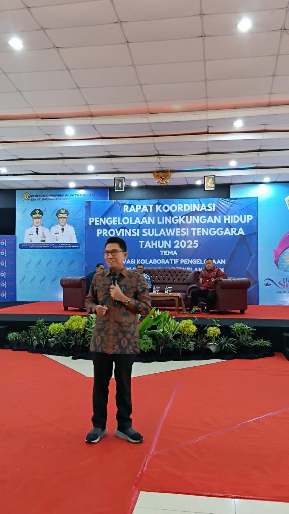 Kolaka, Kepala Pusat Pengendalian Lingkungan Hidup Sulawesi dan Maluku-Kementerian LH/ BPLH Dr. Azri Rasul, SKM., M.Si,.M.H menghadiri Rapat Koordinasi Pengelolaan Lingkungan Hidup Tahun 2025 Sulawesi Tenggara yang bertema “Inovasi Kolaboratif Pengelolaan Lingkungan Hidup Berkelanjutan Untuk Indonesia Emas 2045” pada Jumat (25/04 2025) di Hotel Sutan Raja Kolaka, Sulawesi Tenggara.