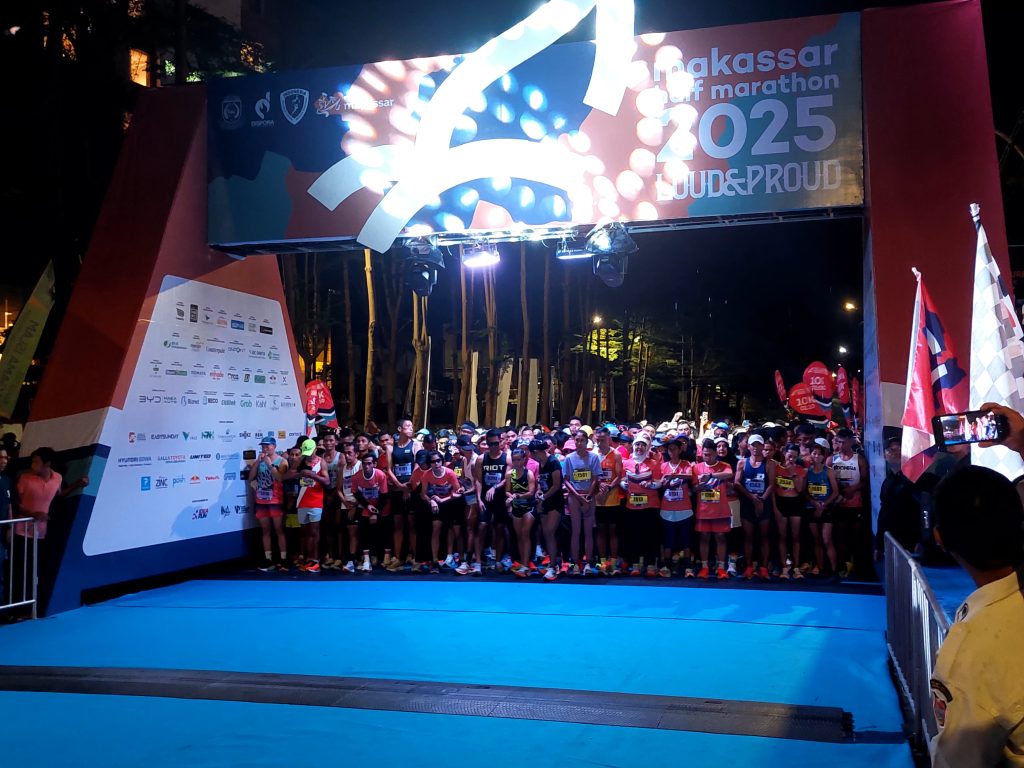 Setelah lagu kebangsaan Indonesia Raya dikumandangkan dan ketika bendera start dikibarkan. Ribuan pelari pun melesat dari garis start, membelah jalanan ikonik Losari menuju garis finis dengan penuh semangat.