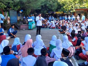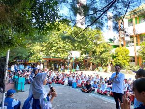 Kegiatan Edukasi Publik “Goes To School” di SMP Negeri 3 Kota Makassar ini mendapat atensi langsung dari para siswa siswi terutama saat tanya jawab bersama para peserta didik baru yang mengikuti MPLS.
