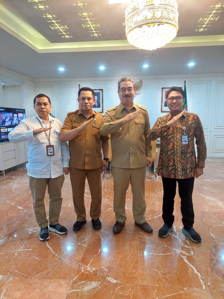 Ambon, Kepala Pusat Pengendalian Lingkungan Hidup SUMA KLH, Dr. Azri Rasul, S.K.M., M.Si., M.H. didampingi Kepala Bidang Wilayah III Suwardi, S.T.P., M.Si. bersama Kepala Dinas Lingkungan Hidup Provinsi Maluku Drs. Roy C. Siauta, M.Si. hadir langsung menemui Gubernur Maluku Hendrik Lewerissa, S.H., LL.M. pada Selasa (5/8) di Ruang Rapat Gubernur Maluku.