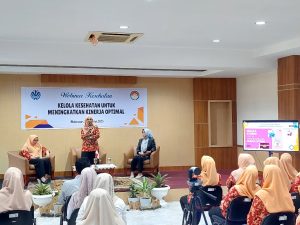 Dimoderatori oleh Ketua DWP Pusdal LH SUMA-KLH, Ibu drg. Hj. Sukreni Abdullah, M.Kes, acara dilanjutkan dengan penyampaian materi “Kelola Stres untuk Meningkatkan Kinerja Optimal” oleh Ketua Bidang Pendidikan DWP KLH/BPLH Ibu dr. Ummu Atiah Erik, Sp.S(K) serta Peran Nutrisi untuk Meningkatkan Kinerja Optimal oleh Ibu dr. Sri Selvia, Sp.GK.