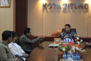 Setelah meninjau TPA, Dr. Azri Rasul dan rombongan melanjutkan agenda dengan beraudiensi bersama Wali Kota Bitung, Hengky Honandar, S.E., dan Sekretaris Daerah Ir. IGN Rudy Theno, ST, MT. Pertemuan ini fokus pada penyelesaian pengelolaan sampah di TPA Aertembaga.