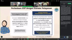 Kepala Biro Sumber Daya Manusia dan Organisasi KLH/BPLH, Sugasri, S.H. menjelaskan bahwa pelayanan publik merupakan pilar utama tata kelola pemerintahan yang baik. Ia juga membedakan antara SOP internal dan standar pelayanan publik, yang berfungsi sebagai janji pelayanan kepada masyarakat.